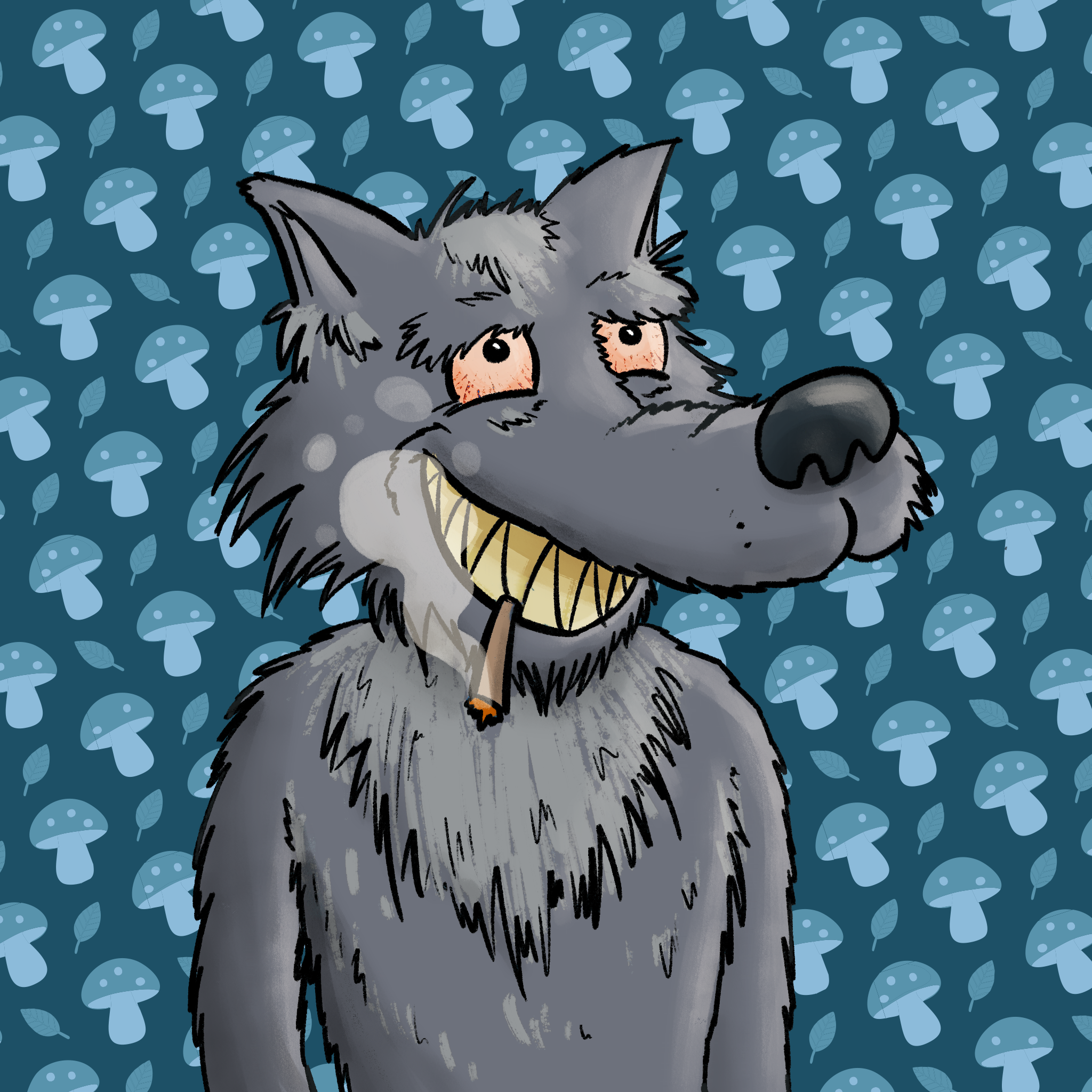 Considéré comme une bête féroce pendant longtemps, le Grand Méchant Loup n'a pourtant pas un caractère très agressif, bien loin de là. Accro aux substances en tout genre, champis, plantes, pourvu qu'elles soient d'origine naturelle, il aime la vie, la vie en meute, et participe régulièrement aux soirées... particulières, organisées par Mère-grand. Sa vie en meute lui a appris les valeurs de l'entraide, et il est toujours prêt à aider quand on lui demande.